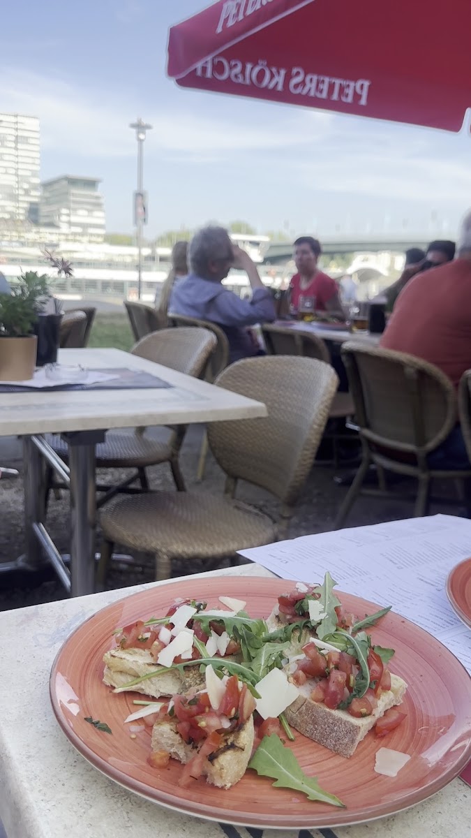 A restaurant sitting next to the river with a great outdoor terrace and nice view, service was not to bad and food was ok, the waiter spoke good english. I would come again for the vibe (lots of people walking past) but the food situation needs a bit improvement.