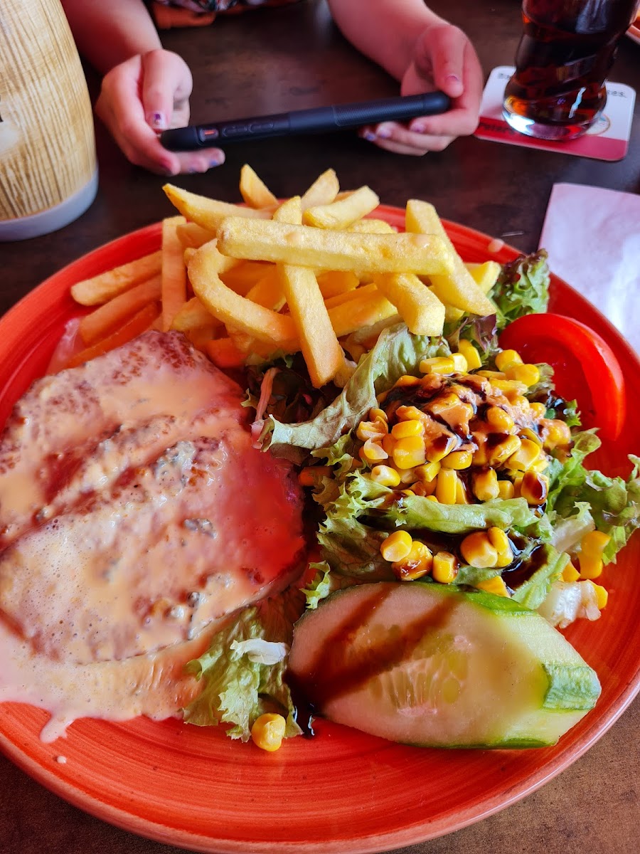 Lovely restaurant. We sat outside by the river and watched the world go by and it was great. I had the soup (tomato) and it was stunning. One of the best soups I’ve tasted (I like salt but some people may find it a bit salty). The pizza was good too. Very basic but basic is lovely. The chips were also very nice. We would recommend and come back again.