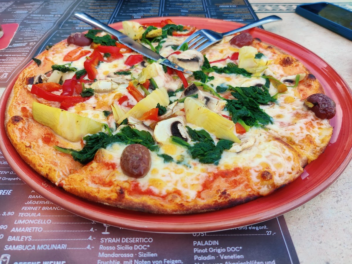 Nice designed restaurant. Has an indoor and outdoor section. The outdoor section looks nice and faces the river, but unfortunately there is was at least one smoker polluting the air. I sat inside to avoid it but it did occasionally drift inside. It was nice being in the old world building and getting some rest (everyone else was outside). The staff was friendly and did not forget about me even though I was the only person indoors and hiding at the back. I had the vegetarian pizza. Good variety and quantity of toppings. Base was fine but a bit burnt in places. Staff did guilt trip me into a tip at the end…I didn’t think tipping culture was a thing here but they were attentive enough so I gave one.